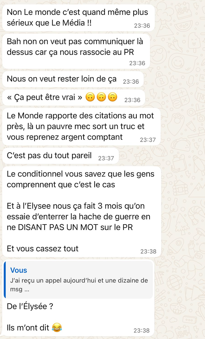 Difficile d'être surpris lorsque l'on sait que Xavier Niel, qui parle au quotidien à Emmanuel Macron, a été l'un des financiers-fondateurs de Médiapart, aux côtés de certains des membres les plus compromis du petit Paris, ce qui lui a valu une protection indélébile de ce média. Quiconque se permet d'en parler se voit d'ailleurs immédiatement ciblé par le journal, et prévenu des conséquences qu'il aurait à continuer à en parler.