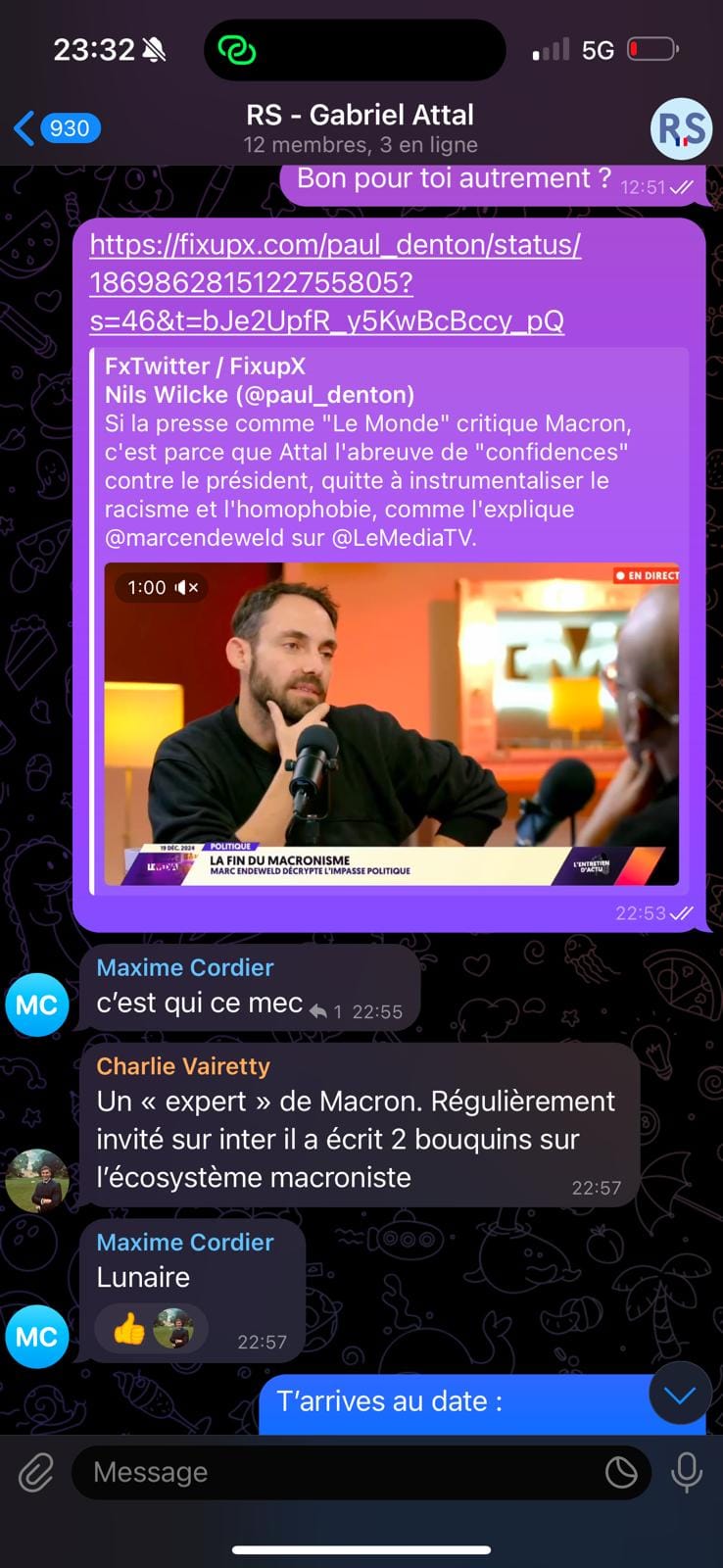 Tous les contenus sont scannés. Ainsi, lorsque Marc Endeweld révèle que Gabriel Attal nourrit les journalistes pour nuire à Macron - une information bien connue et partagée par le Canard enchainé, qui avait révélé que Gabriel Attal avait construit sa carrière sur la distribution d'informations à des journalistes politiques - les attaques commencent à pleuvoir.