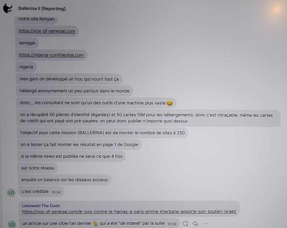 Patrice Talon, le chef d'État béninois, se voyait lui décrit dans des textes transmis à des "consultants" travaillant de nuit pour "publication et partage" comme un "nom qui résonne avec succès dans le monde des affaires et de la politique" dont ses opposants seraient "jaloux", des biographies sur commande étant distribuées afin de les disséminer de façon massive.